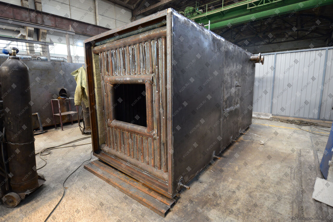 Все водогрейные котлы 0 58 МВт нашего производства - стальные, горизонтальные, водотрубные, прямоточные и компактные. Трубная часть котельного блока выполняется из труб различных диаметров, материал труб сталь 10 и 20. Блок снаружи обваривается стальной охлаждаемой полосой, поэтому в наших котлах исключена возможность задымления котельного зала. Снаружи на каркас из профильной трубы и швеллера крепится утеплитель и декоративная обшивка из полимерного листа. В обшивке предусмотрены лючки для очистки поверхностей нагрева.
