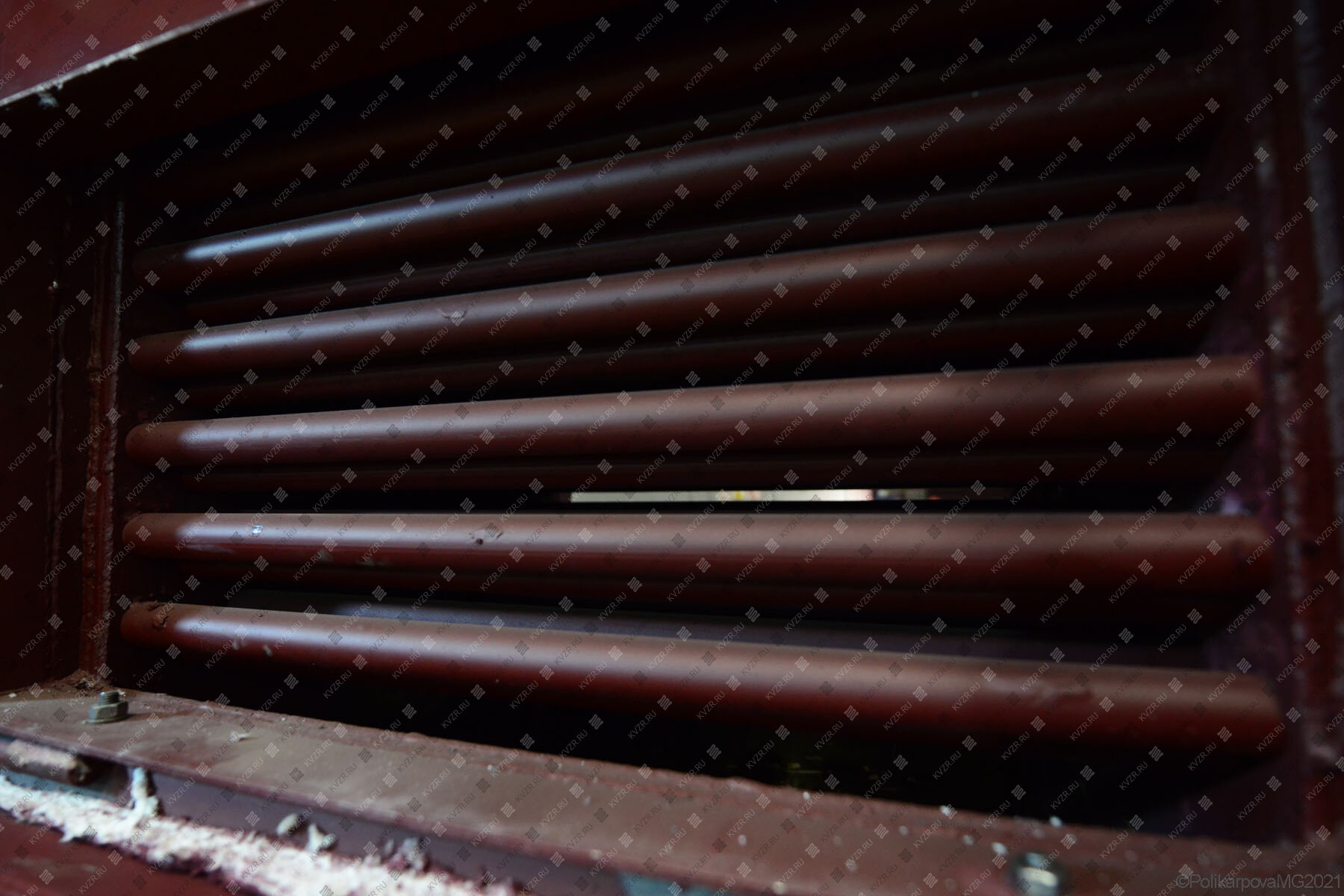 Конструкция теплообменника – водотрубная. Теплоноситель двигается с высокой скоростью, делая многократные повороты по всему периметру трубных панелей. Вода поступает в трубы котельного блока, расположенные в шахматном порядке. Шахматное расположение позволяет максимально омывать поверхности нагрева и отдавать тепло теплоносителю. Расположение труб в шахматном порядке исключает забивание осаждения, снижает вероятность забивания трубных пучков конвективной части и обеспечивает компактность агрегата. Высокая скорость воды в трубах сдерживает процессы отложения накипи в поверхностях нагрева и исключает перегрев.